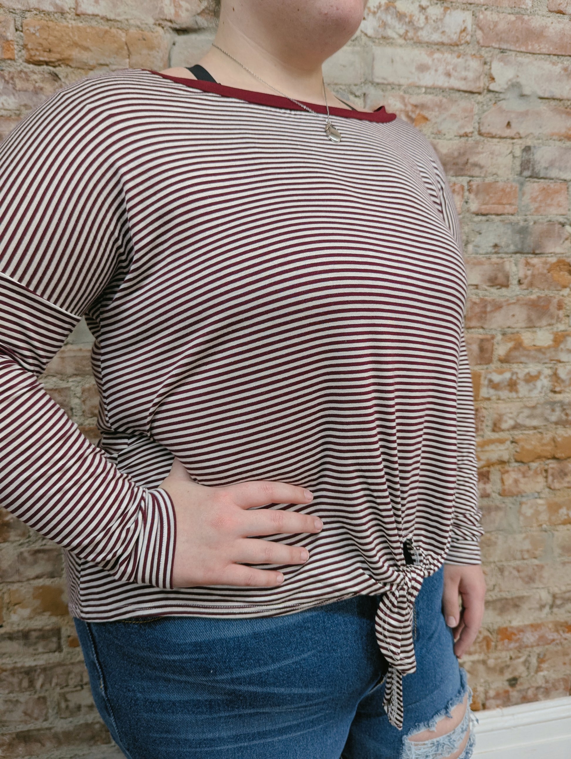 Burgundy Striped Tie Top