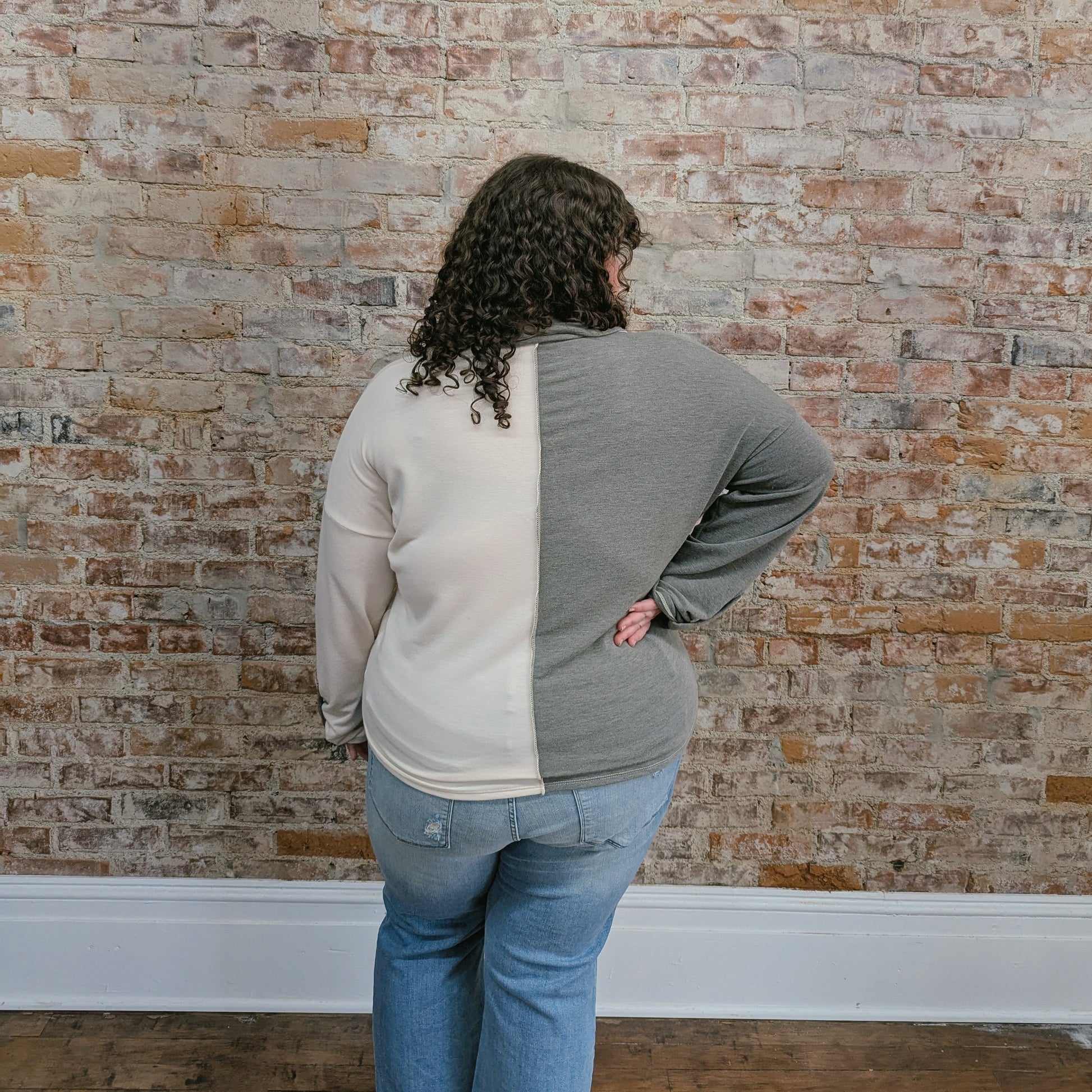 This colorblock sage top is the perfect top to elevate your wardrobe! We love that it's not just a plain sage top or a plain cream top, it's the perfect mix of both! The button details on the top and the sleeves is what brings it together! Plus it has a perfect collar for a casual look.
