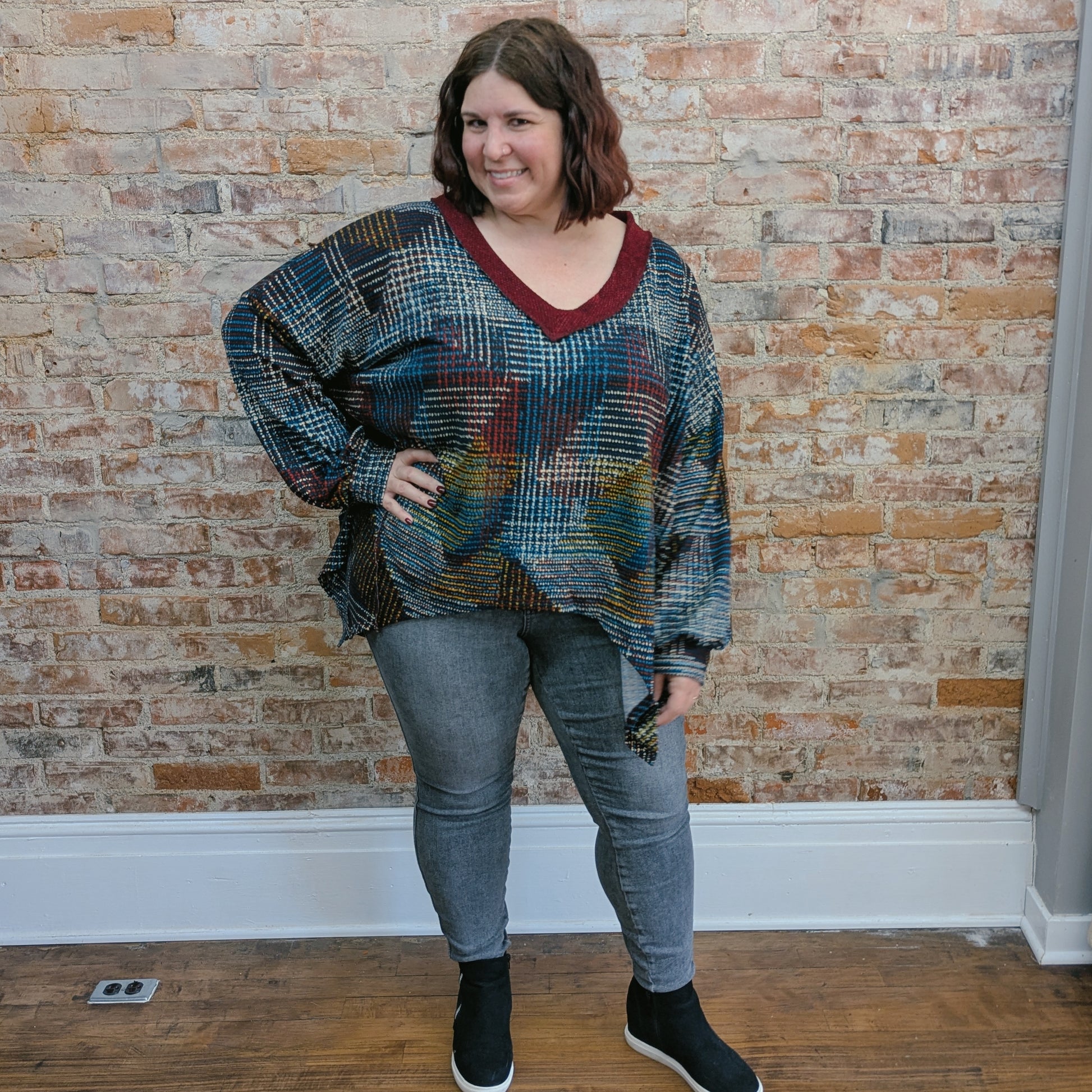 This top is so flowy and we love that it's colorful but with muted colors. The v-neck makes for a flattering look that can be worn as is or off the shoulder! We just love the puffy sleeves and the scooped cut-out style hem that scoops in the front and is long in the back; perfect for wearing with leggings! And the best part is that this top is so soft! No need to worry about being uncomfortable because this top has everything you need and more!