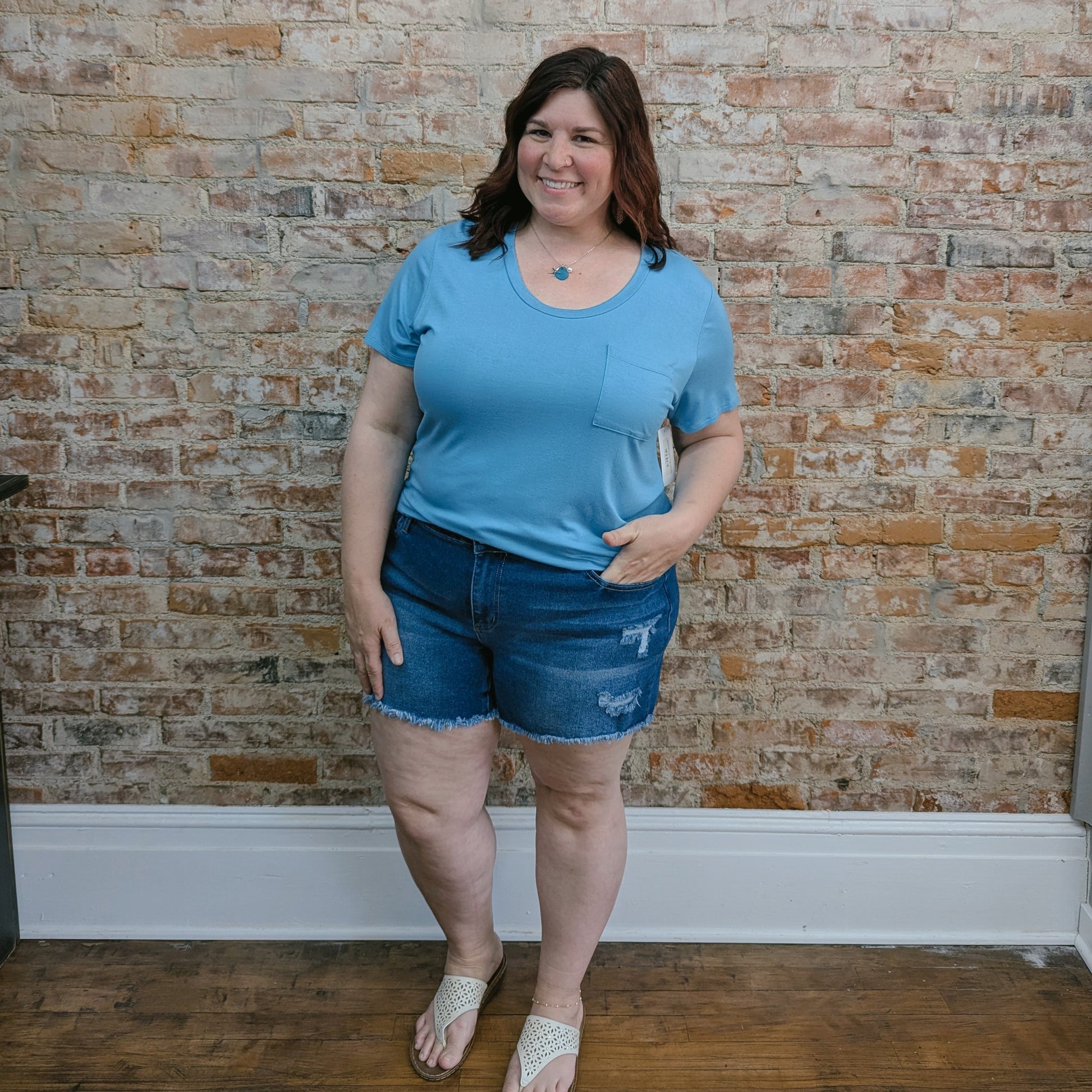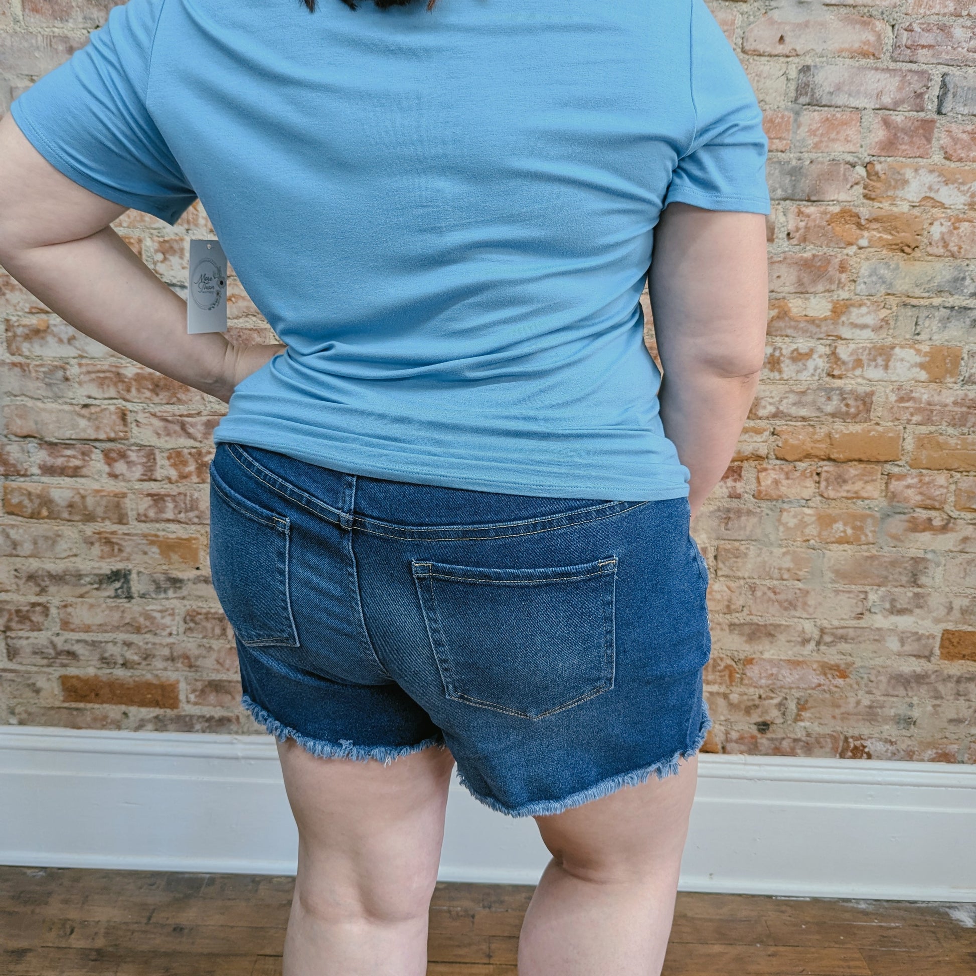 These distressed jean shorts are the perfect staple shorts for the summer! They are stretchy and super comfortable! Plus they are the perfect not-too-short but not-too-long length. And the distressed hem adds the perfect relaxed look. These shorts can be worn all day and you don't have to worry about being uncomfortable. Pack these shorts for your next summer vacation or wear them as everyday shorts! However you want to wear them we think these are perfect for any occasion!