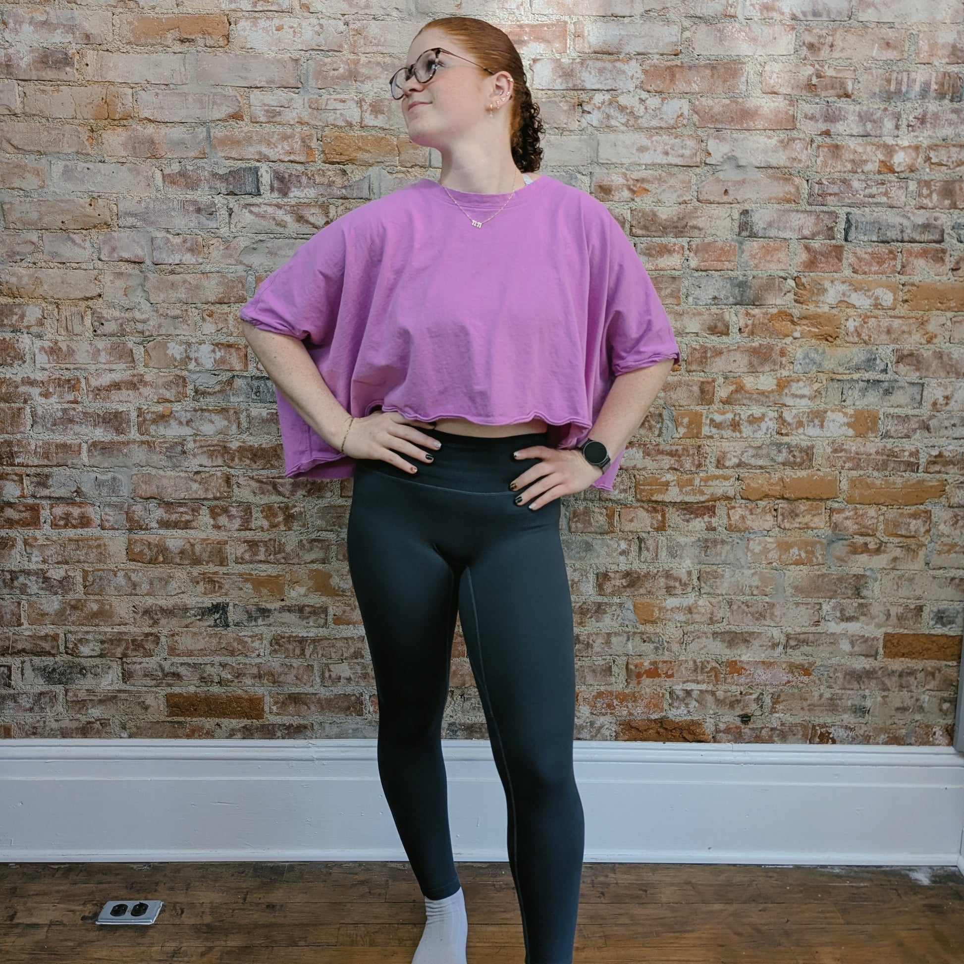 And these charcoal leggings just do it for us! They are a charcoal grey color and they have white stitching along the sides. They have a thick waistband and we've found they work for both short and long legs! These leggings are super soft and comfortable and perfect for lounging around or going out! Pair them with your favorite sweatshirt for a super comfortable outfit!